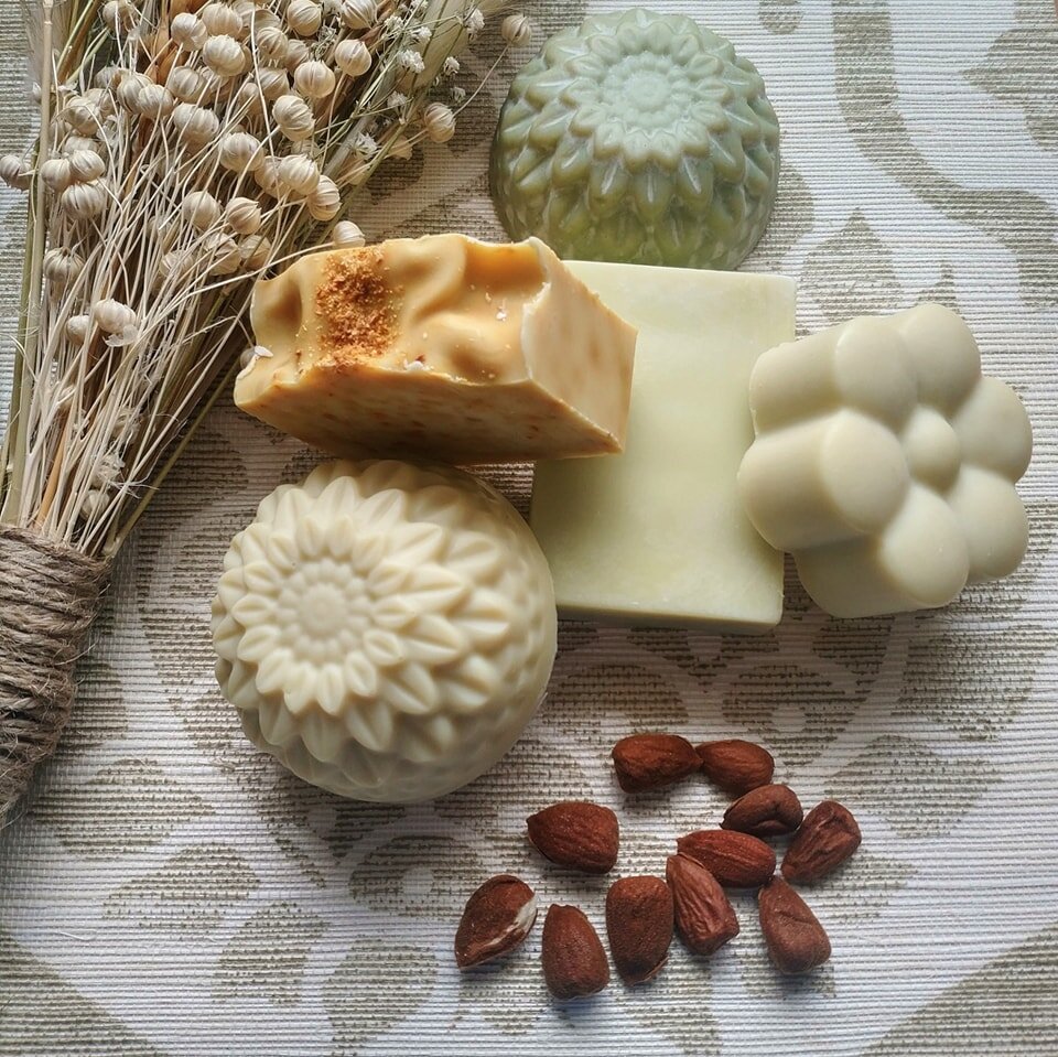 Sweet almond oil is commonly used for massage blends, aromatherapy essential oil blends, balms, facial serums and skin conditioning, also in baby skincare products due to its mild and nourishing characteristics. But my experimenting with sweet almond oil started in soapmaking. So why do I use it in soap when it’s mainly used for leave-in products?