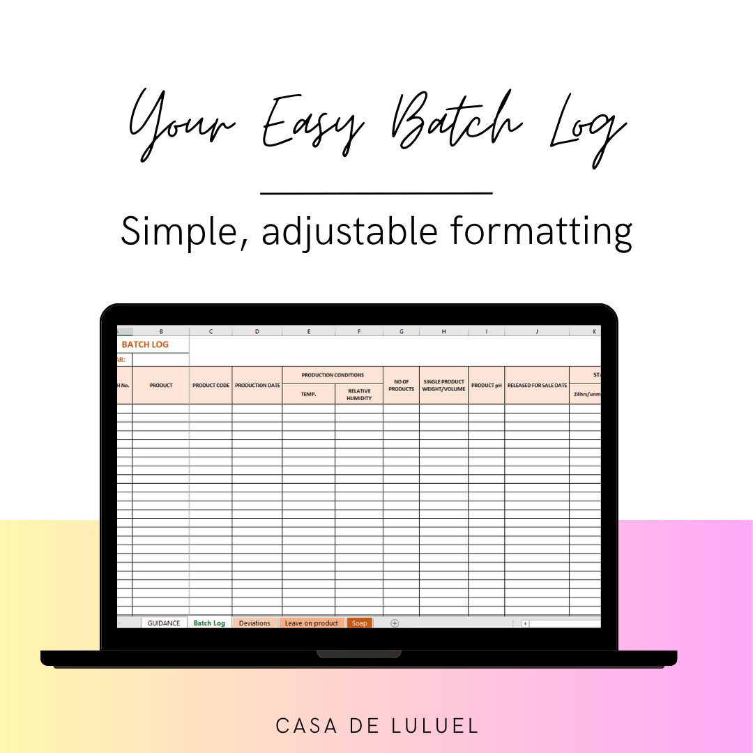 Batch recordkeeping is not only a best practice, but a requirement for cosmetic products intended for sale in the UK and the European Union. Our Batch Log template consists of four sheets plus a guidance sheet with generous comments and examples.