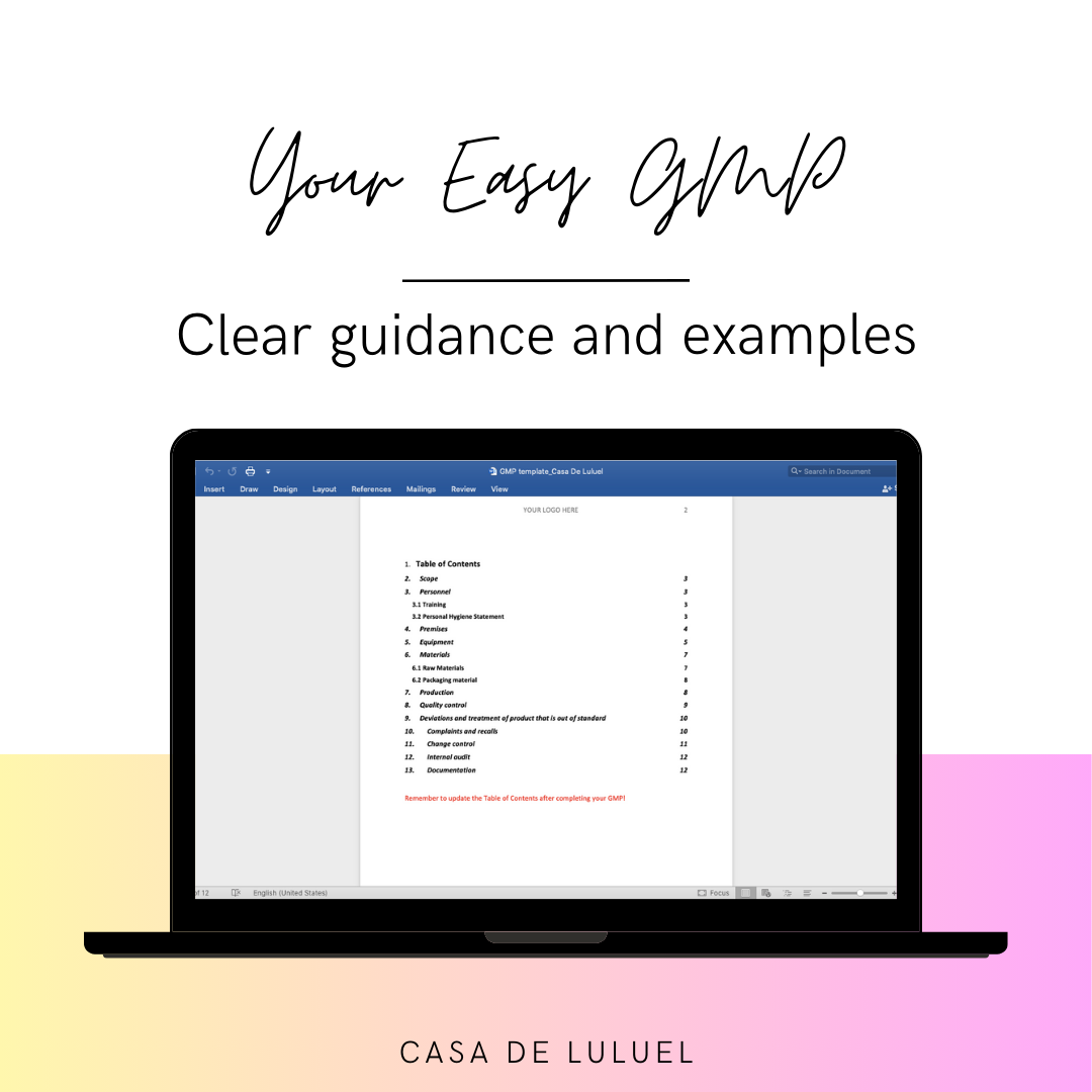 Just like our PIF writing guide, this 23-page guidebook was created to help all independent cosmetic makers in writing their first Good Manufacturing Practice (GMP) manual.