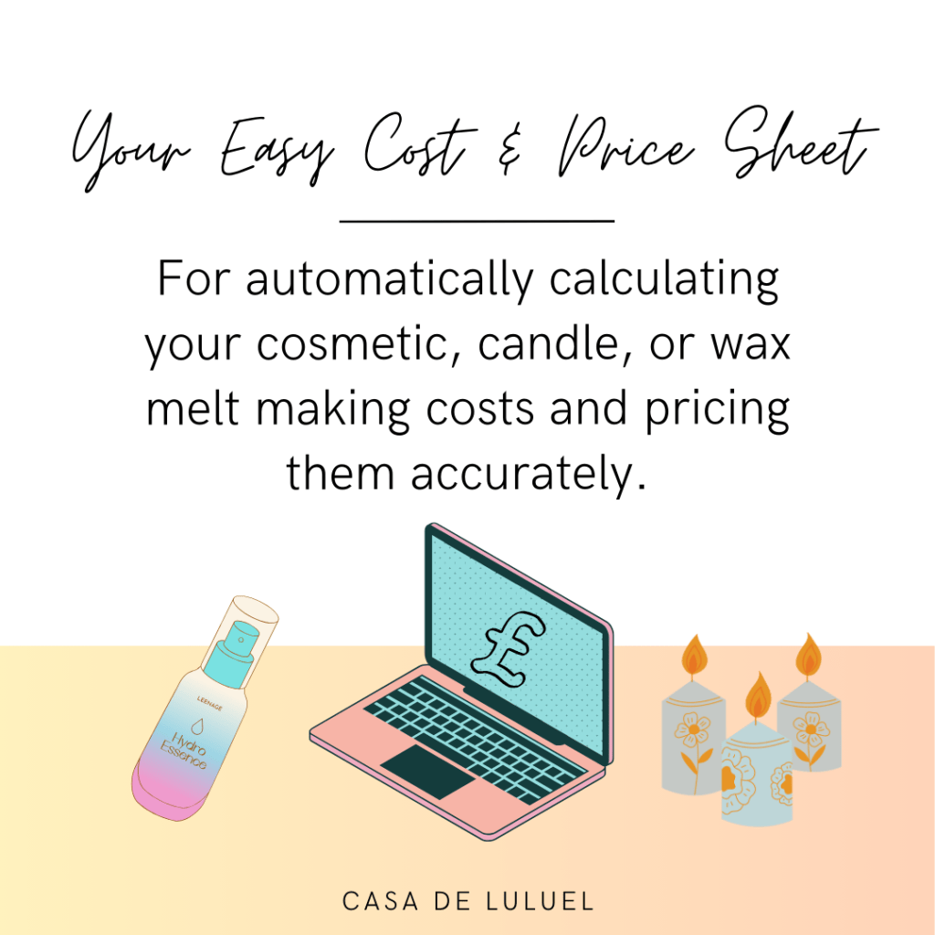 Cosmetic, Candle & Wax Melt Cost & Price Calculator Template €7,40